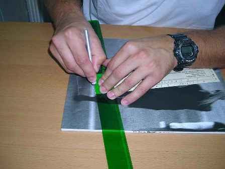 16. Trazar una línea 4mm por encima de la que viene impresa en la cartulina, para emplearla después como zona de corte (una de las líneas impresas en la cartulina no está bien colocada). |