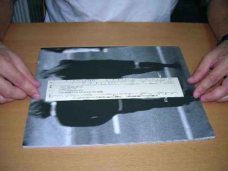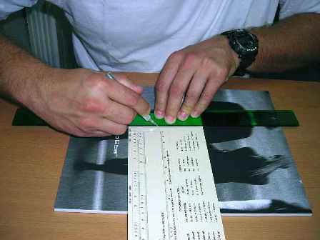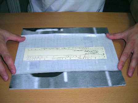 17. Plastificamos la parte móvil de la regla de cálculo. |