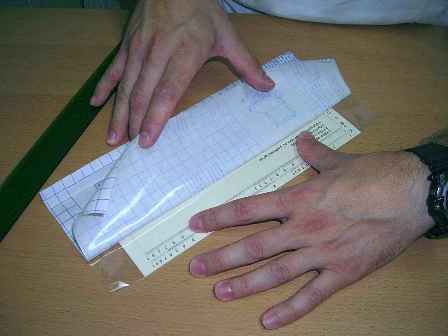 18. Plastificamos la parte móvil de la regla de cálculo. |