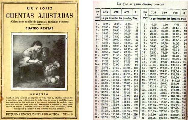 Tablas, calculadores, libros de “cuentas ajustadas” han proliferado durante todo el siglo XIX y XX en todos los países y sobre todo tipo de cálculo : sueldos, precios, intereses, tarifas, tablas de multiplicar para comerciantes,...etc.. El ultimo ejemplo reciente sería las tablas (forma tarjeta de crédito) para convertir las pesetas en euros e inversamente.