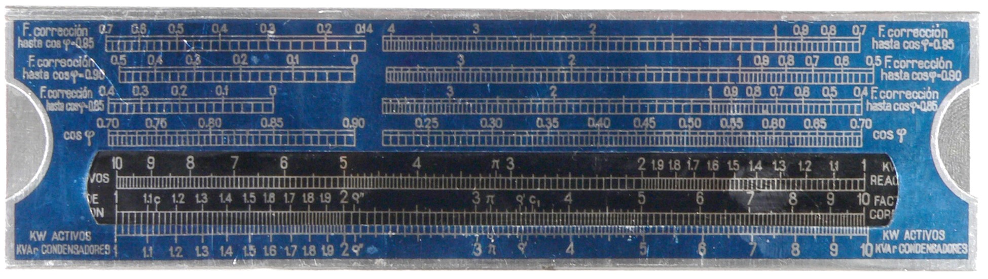 | Escalas: | (Factores de corrección, x4), cosφ / CI(kVA reactivos), C(Factor de corrección) / D(kW activos) |