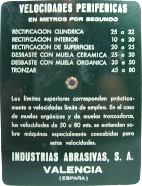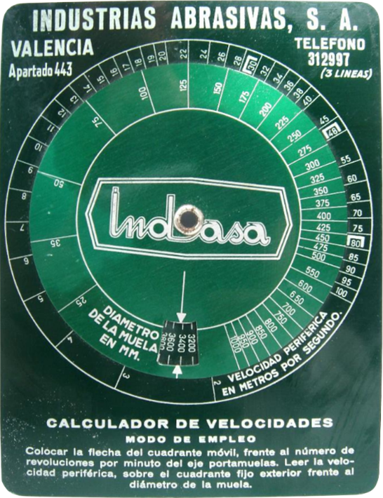 | Escalas: | Específicas para el cálculo de la velocidad periférica de la muela en esmeriladoras (circulares). |