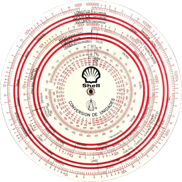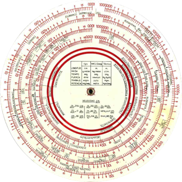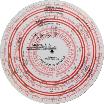 | Escalas: | Anverso: (longitud), (superficie), (volumen); (masa), (fuerza), (trabajo); (ºC), (ºF); (SSU), (SR), (ºE), (cst) Reverso: (presión – potencia); (caudal); (densidad – par); (conductividad), (calor), (conductancia) |