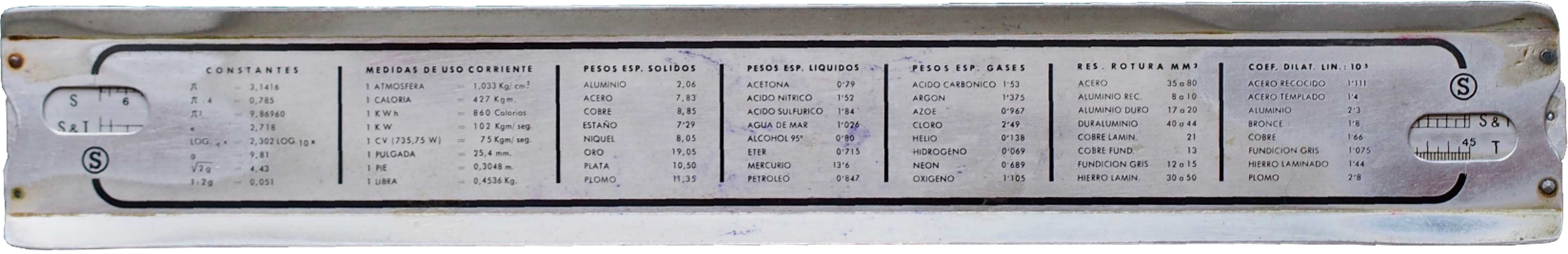 versiones que varían en el material y su acabado. Al menos podría haber también un calendario perpetuo y un exposímetro para fotografía, (según sendos modelos de utilidad). Todos los modelos están basados en aluminio, buscando una fabricación resistente y económica (patente ES183457A1). Por similitud, el grabado de las escalas podría haberlo realizado el fabricante francés Damien (patentado). |