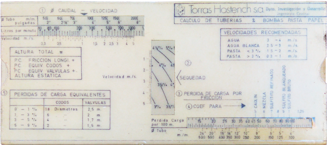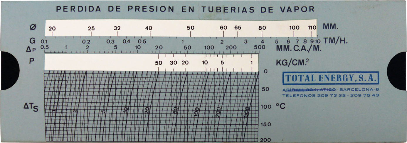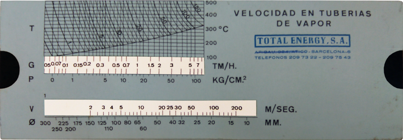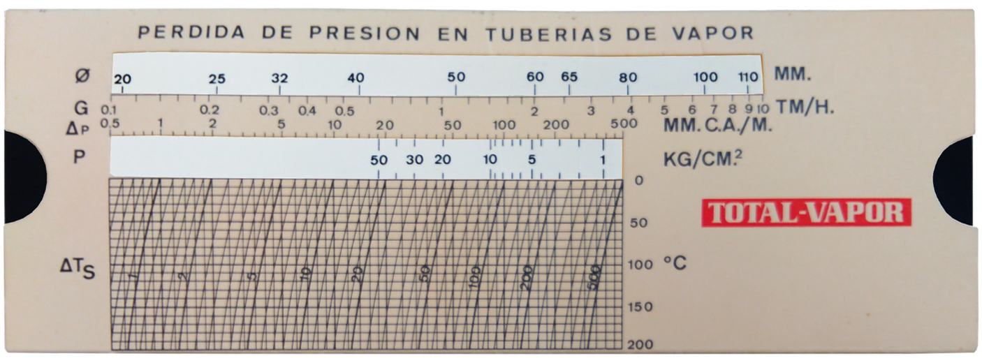 | Escalas: | Específicas para cálculos de pérdidas de presión y velocidades en tuberías de vapor. |